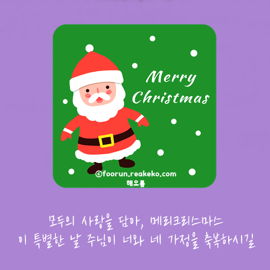 크리스마스에는 축복을! 크리스마스에는 사랑을! 행복 가득한 크리스마스 보내세요! 사랑과 행복 속에서 크리스마스 보내시고 남은 12월 즐겁게 마무리하시면 좋겠습니다. 새해에는 더 많은 기쁨과 성취가 있기를 바랍니다.