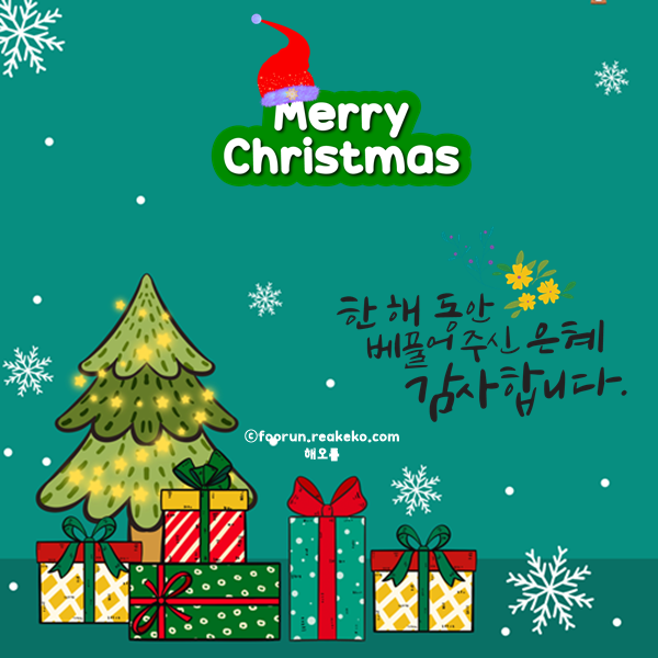 올 한해 따스한 보살핌 감사드립니다. 크리스마스 따뜻하게 보내시고 남은 한 해 잘 마무리 하시길 바랍니다. 새해에는 더욱 번창하시길 바랍니다.