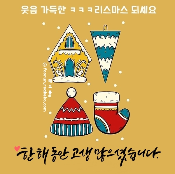 다사 다난했던 한 해도 저물어갑니다. 가족과 연인, 친구와 함께 따듯하고 행복한 크리스마스 보내시길 바랍니다. 올 한 해 고생 많으셨습니다. 즐거운 연말 보내세요! Merry Christmas & Happy New year!
