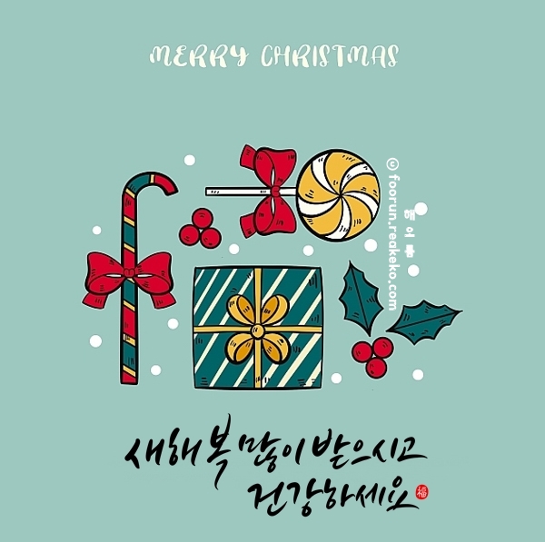 행복한 크리스마스 보내시고 가정에 주님의 축복이 가득하시길 기원합니다. 새해에는 소망하시는 일 모두 이루시며 건강과 행복이 함께 하시길 바랍니다. 크리스마스에는 온정을, 새해에는 행운을 가득히 받으세요. Merry Christmas & Happy New year!