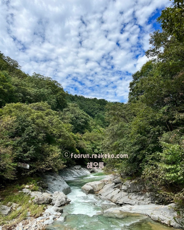 용오름계곡은 청정 자연 속에 있어 맑고 시원한 계곡물로 유명한 강원도 홍천 가볼만한곳 베스트 10곳입니다. 수심이 깊은 곳부터 얕은 곳까지 다양하게 분포되어 있어 물놀이 뿐만 아니라 계곡 주변에는 산책이나 사진 촬영을 하기에 좋으며, 자연 워터슬라이드 같은 재미있는 포인트도 있습니다.