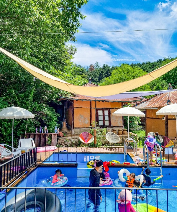시원한 홍천강으로 둘러쌓여 있으며 잣나무의 피톤치드가 뿜어져 나오고, 아이들이 놀 수 있도록 방방이와 미끄럼틀, 수영장 시설이 구비 되어 있어 정말 추천하는 강원도 홍천 가볼만한곳 베스트 10입니다.