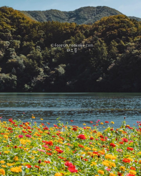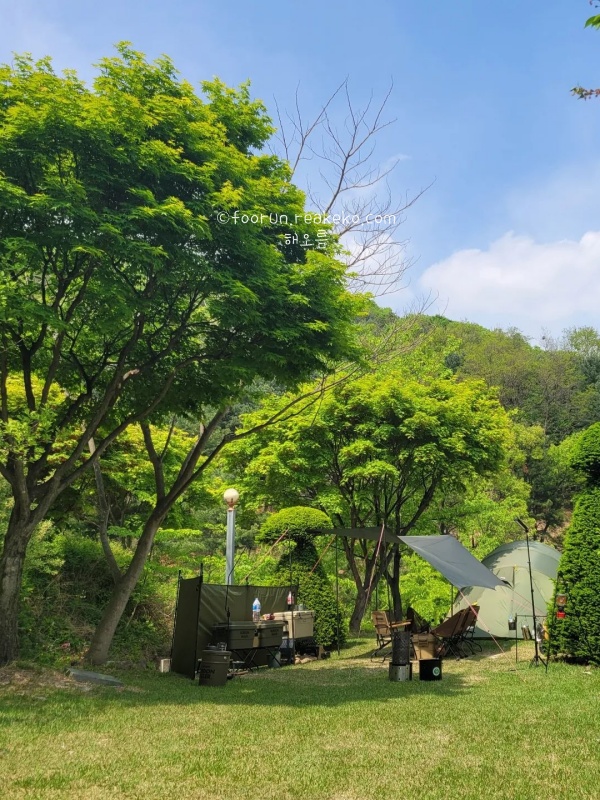 봄철 벚꽃뷰와 가을 단풍뷰가 예술일뿐만 아니라 도롱뇽과 반딧불도 만나 볼 수 있으며 할로윈캠핑으로 유명하여 아이들에게 인기 만점입니다. 또한 산책로를 따라 산책하며 그윽한 꽃 향기도 맡아보실 수 있으니 시간적 여유가 되신다면 산책코스는 필수입니다.
