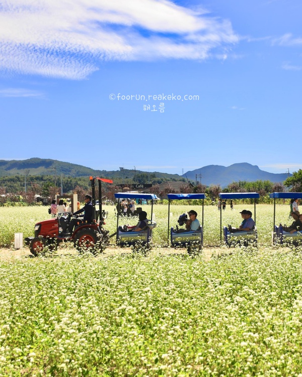 먹거리 부스에서 즐긴 메밀 막걸리와 다양한 지역 음식을 맛보며 강원도의 가을을 온전히 느낄 수 있습니다. 메밀꽃 열차를 타고 꽃밭을 가로지르는 경험은 예상보다 재미있고 신선했습니다.