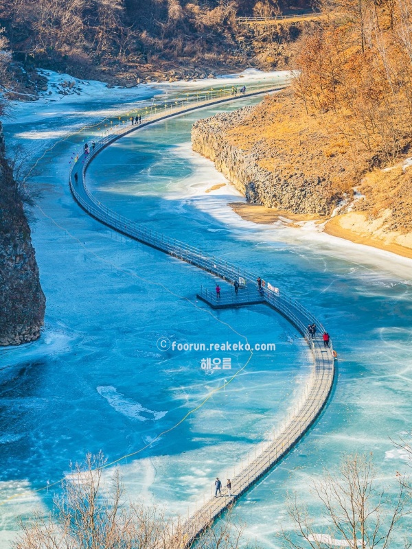 겨울 강원도 가볼만한곳 베스트 10 여행지 추천 철원 한탄강 물윗길은 겨울철에만 열리는 특별한 트레킹 코스로, 얼어붙은 강 위를 걷는 독특한 여행입니다. 주상절리와 얼음 폭포가 어우러진 겨울 풍경은 그 자체로 감동이었죠.