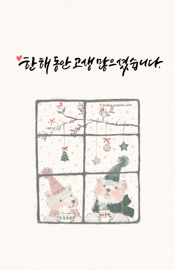 힘든 시기를 함께 지나고 있지만, 희망을 잃지 않고 행복하고 찬란한 새해를 맞이하시길 바랍니다. 다가오는 2025년은 건강과 사랑이 가득한 날들이 이어지기를 기원합니다. 새해에도 항상 건강하시고, 소망하는 모든 일들이 풍성한 결실로 맺어지는 한 해가 되기를 응원합니다. 새해 복 많이 받으세요.