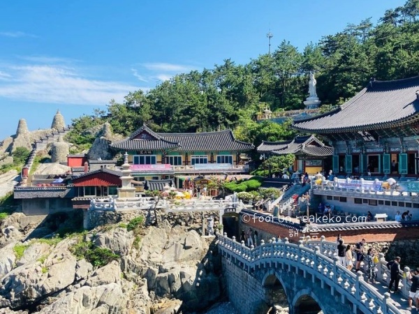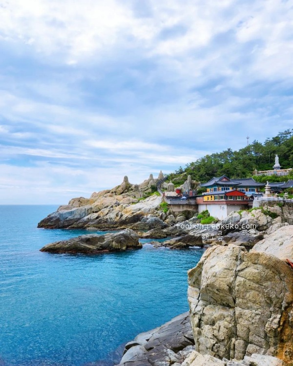 사찰의 명소인 108계단을 내려가면 바다를 배경으로 한 웅장한 사찰의 전경이 펼쳐집니다. 파도 소리와 함께하는 이 풍경은 마음을 차분하게 해주었으며, 새벽 시간에 일출을 감상하며 소원을 비는 경험도 해보면 좋겠죠?