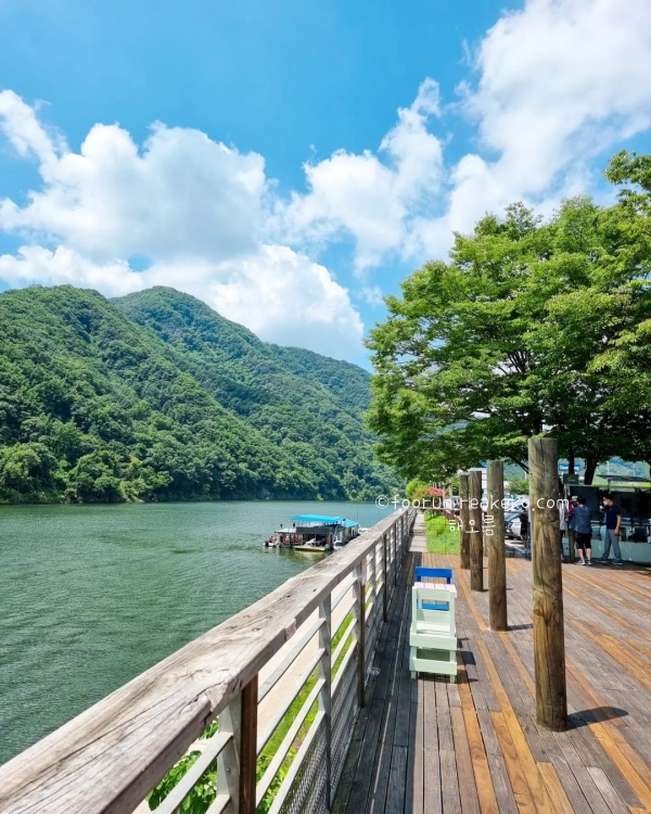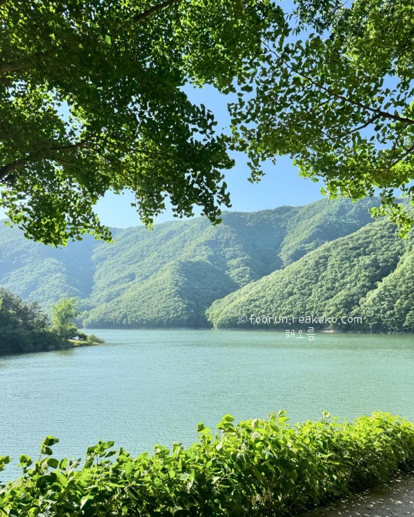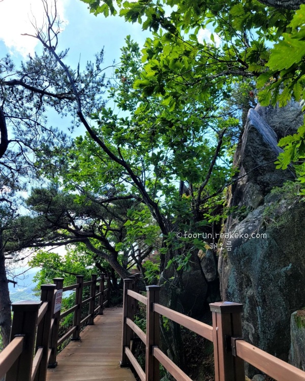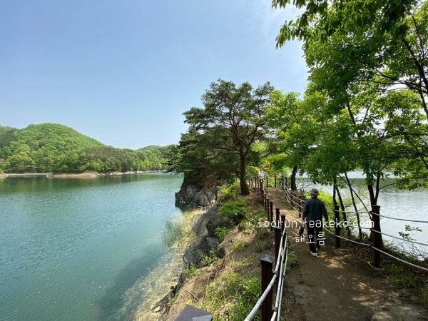 부소담악을 즐기기 위해 만들어진 산책로는 물에 떠 있는 산을 따라 조성되어 있습니다. 길을 따라 걸으며 자연의 아름다움을 만끽할 수 있었습니다. 추소정에서 바라본 부소담악의 풍경이 가장 아름답습니다. 맑은 물길과 어우러진 부소담악의 경치는 옥천 최고의 풍경이고 보트 투어도 가능해서 물 위에서 바라보는 경치도 일품입니다.