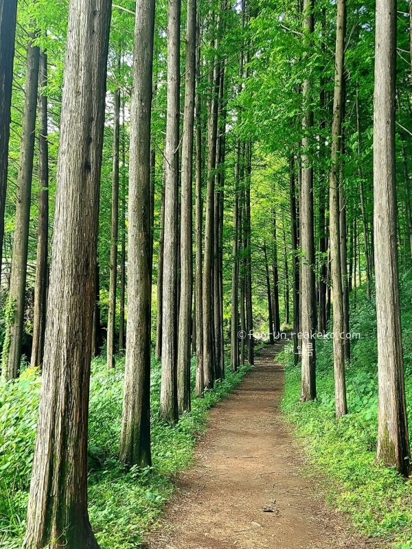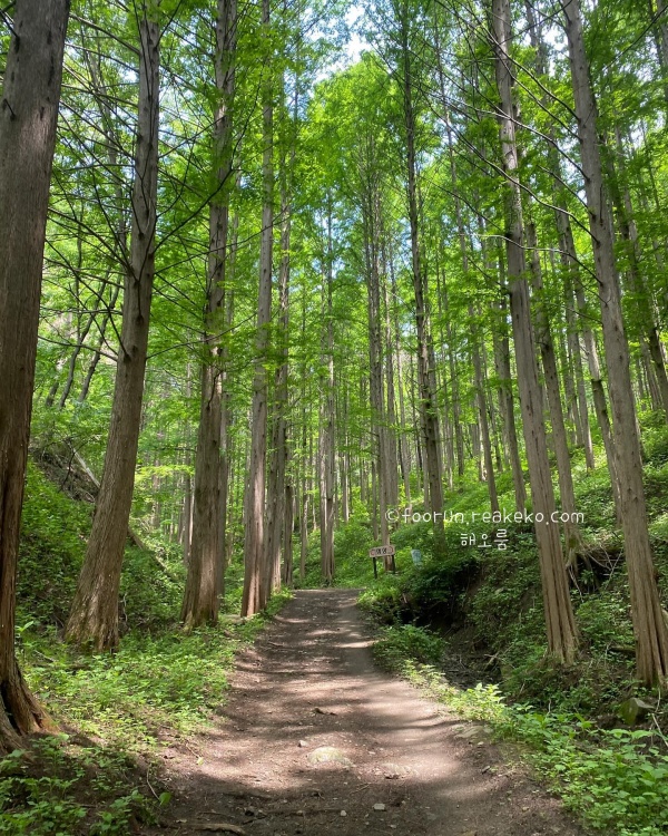 화인산림욕장은 개인이 40년 동안 나무 사랑을 실천하고자 이곳에 나무을 심었고 지금에 이르렀다고 하니 정말 대단한 옥천 가볼만한곳 베스트 10입니다. 실제로 보면 메타세콰이아 숲 규모가 어마어마합니다.