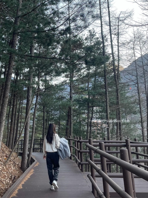 가을에는 단풍이 멋지게 물들어 더욱 아름다운 풍경을 감상할 수 있습니다. 조용한 분위기 속에서 혼자 산책하기에도 좋고, 잘 정돈된 휴양림은 힐링하기에 좋고, 족욕 체험도 할 수 있어서 쌓인 피로를 싹 풀 수 있었습니다.