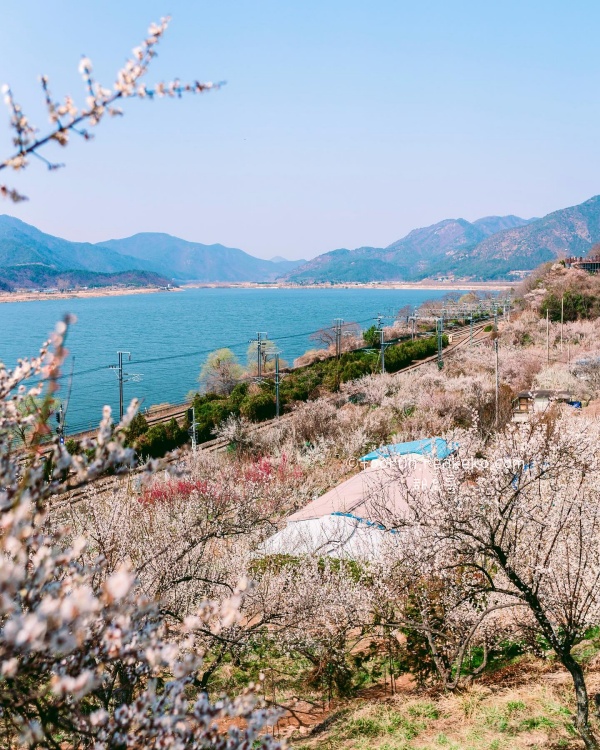 경상도 3월에 여행하기 좋은곳 원동 순매원은 온통 하얀 매화꽃으로 덮인다. 강변을 따라 길게 이어진 매화나무들이 꽃을 피우면, 나뭇가지 사이로 스며든 봄 햇살이 더욱 부드럽게 느껴진다. 3월 초에는 꽃망울이 조금씩 터지기 시작하지만, 제대로 된 풍경을 보고 싶다면 3월 10일 이후가 좋다. 이 시기에는 매화가 만개해 순백의 터널을 이루며, 어디서 사진을 찍어도 그림처럼 아름답다.