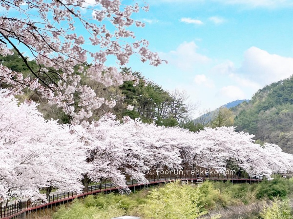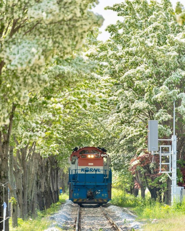 예전에 이곳을 찾았을 때, 철길 옆 벤치에 앉아 한참을 머물렀던 기억이 난다. 바람에 흩날리는 꽃잎을 바라보며, 그냥 그렇게 시간을 보내는 것만으로도 기분이 좋아지는 곳이다. 낮에는 푸른 하늘 아래 흰 꽃이 더 선명하게 빛나고, 해가 질 무렵이면 따뜻한 빛을 받아 더욱 부드러운 분위기를 만나볼 수 있다.