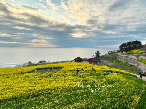 몇 해 전 4월에 영광 백수해안도로 드라이브했을 때, 도로 양옆으로 펼쳐진 유채꽃밭이 제주도 부럽지 않은 풍경이었다. 차를 잠시 세우고 유채꽃밭 사이를 거닐며 봄의 향기를 만끽하고 또한, 백수해안도로는 일몰 명소로도 알려져 있어, 노을 지는 바다와 유채꽃의 조화는 또하나의 봄의 낭만이라는 생각이 들었다.
