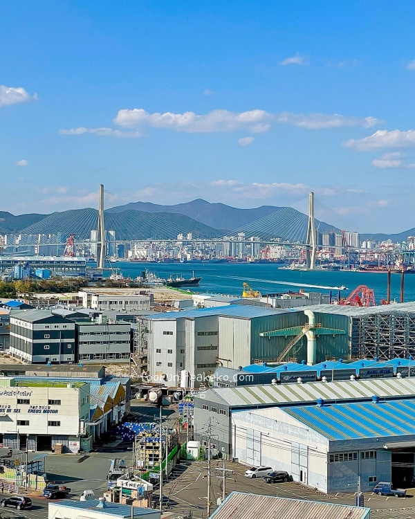 광안대교 쪽만 바라보다가 이번엔 남항대교 뷰에 눈이 멈췄다. 영도에 위치한 오구카페는 1층부터 4층, 그리고 루프탑까지 이어지는 전면 통유리 구조 덕분에 어디에 앉아도 바다가 품처럼 안기는 영도 대형 카페 추천이다. 해질녘이면 빛이 천천히 스며들고, 4층 뷰가 가장 예뻤다. 루프탑에선 날씨 좋은 날 바람을 맞으며 남항대교와 빨간등대를 함께 내려다볼 수 있어, ‘카페’ 이상의 풍경이 된다.
