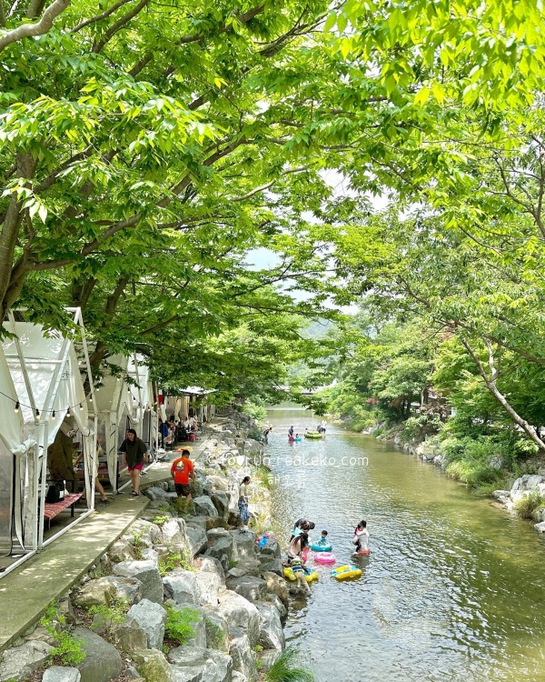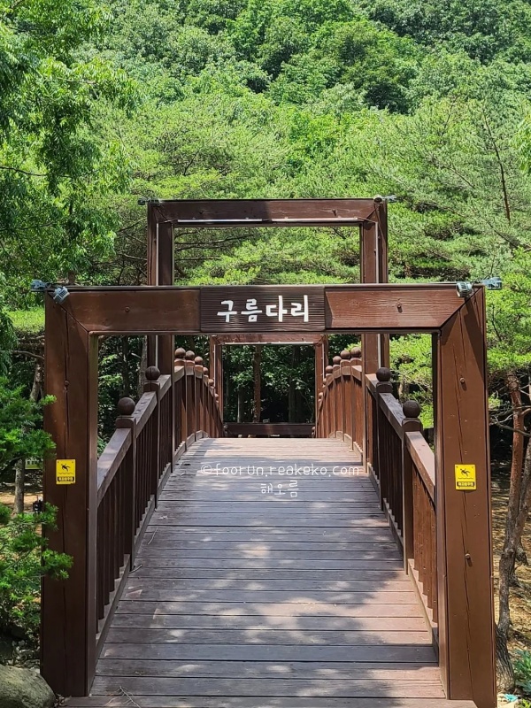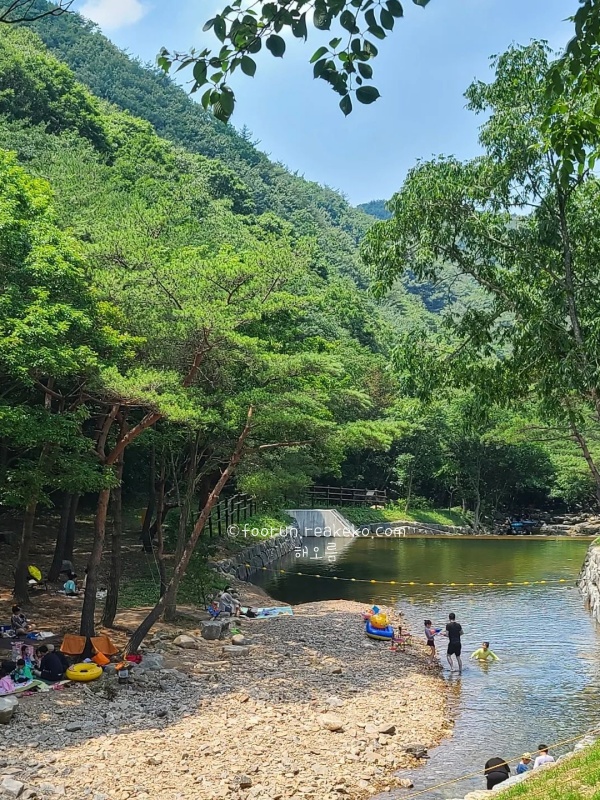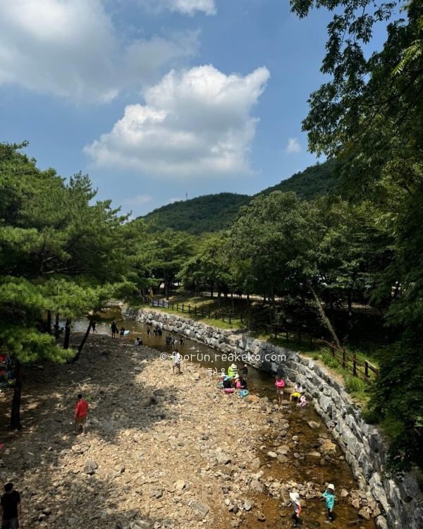 계곡 물은 깊지 않아 아이들과 함께 가볍게 물놀이하기도 좋고, 주변에 평상과 식당이 있어서 물놀이 후 배도 든든히 채울 수 있답니다. 본격적인 수영보다는 시원하게 발 담그고 놀기 좋은 여름 피서지로 추천드려요. 산책로가 잘 정비돼 있어, 식사 후 소화 겸 한 바퀴 걷기도 좋았고요.