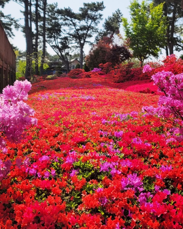 봄이면 튤립이 한창이고, 4월 말부터는 철쭉이 절정을 이뤄요. 5월엔 꽃들이 경쟁하듯 피어나는 진짜 '꽃천국'이 되고요. 여름이 되면 수국이 또 한가득 피어나서, 계절 따라 매번 다른 표정을 가진 정원이에요.