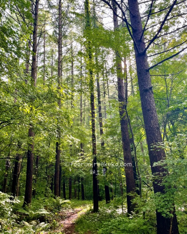 8월 특성: 높은 나무들이 볕을 막아주고, 계곡 옆 길이라 전체적으로 습도가 낮고 시원합니다.