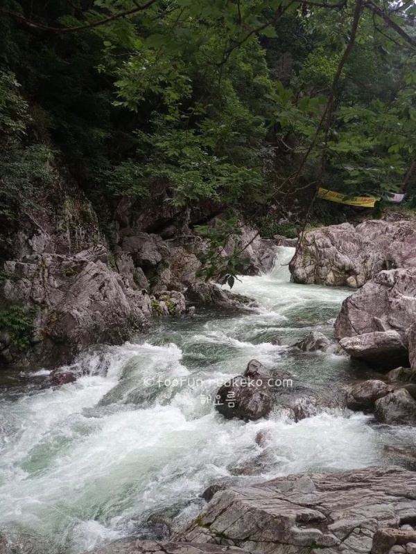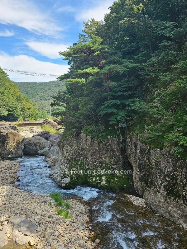 탐방 팁: 계곡 산책로 기준 약 2km, 전체 둘러보려면 2시간 정도면 충분. 음주 후 산행은 금지되어 있고, 바위가 미끄러우리니 계단 중심으로 안전하게 걷는 것이 좋고요, 물놀이 시에는 구명조끼 등 안전장비 착용 권장됩니다.