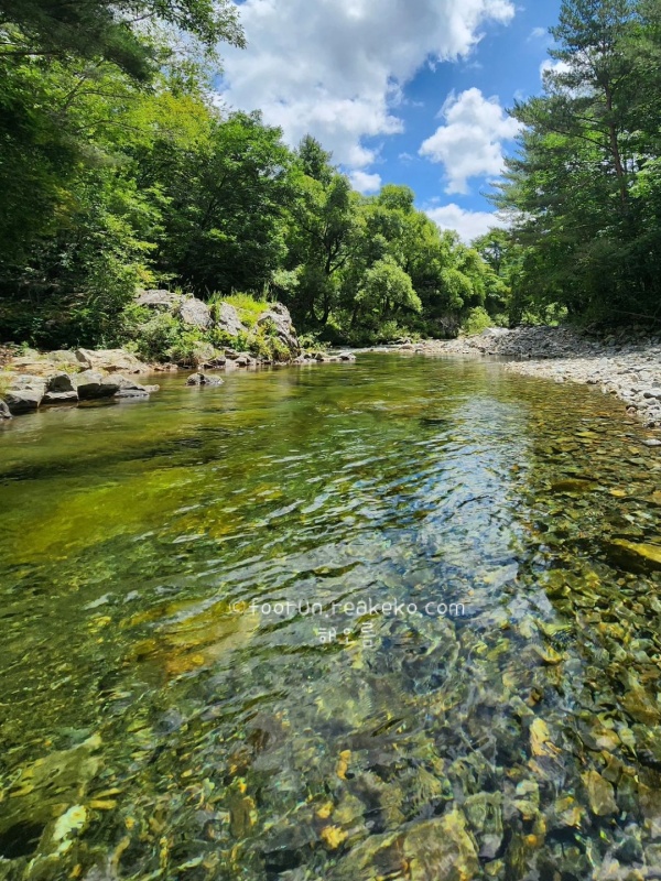 탐방 팁: 계곡구간만 걸으면 약 4시간, 숲길 많아 그늘 풍성. 조경동교 주변 휴식 지점 있어요. 안전을 위해 미끄러운 자갈 주의하시고, 여벌 신발이나 샌달 준비하면 습니다.