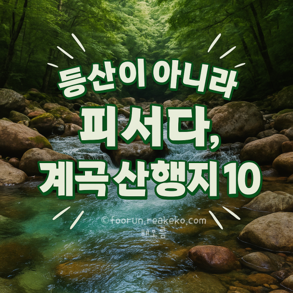 물론 아무 산이나 갈 순 없죠. 8월에도 걷기 좋은 산은 따로 있어요. 해발 1,000m 이상이거나, 그늘이 풍성한 숲이 오랫동안 이어지는 곳, 그리고 결정적으로 중간중간 발을 담글 수 있는 계곡이 흐르는 산이어야 해요. 주차장에서 탐방로 입구까지 멀지도 않고요. 이런 조건이 갖춰졌다면, “산행”이 아니라 “피서”라는 이름으로 부를 수 있죠. 오늘 소개할 8월 산행지는 땀에 절은 고행길이 아니라, 숲 속 쉼표 같은 시간들이 기다리는 8월 계곡 산행지, 계곡산행 추천이에요.