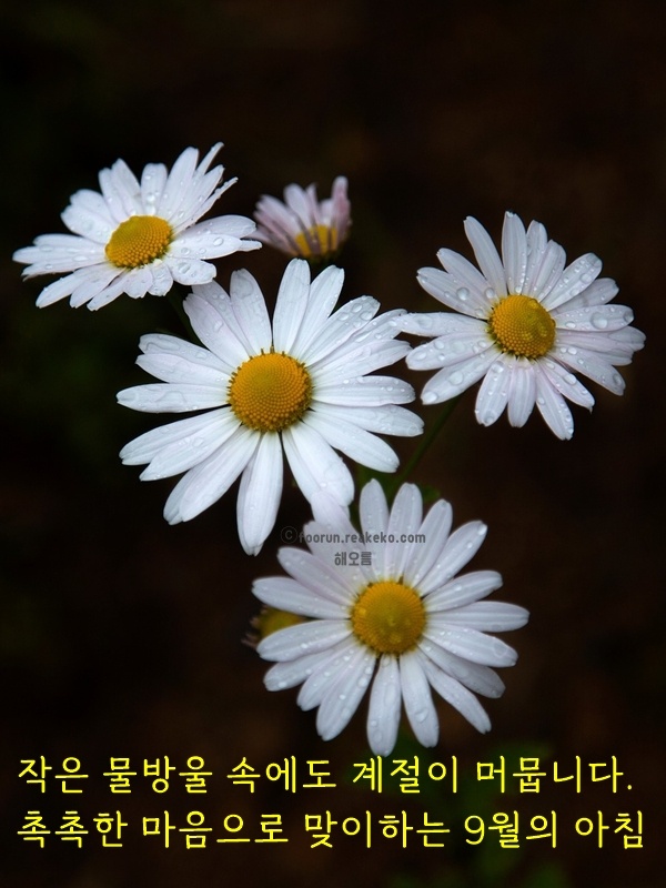 햇살이 조금씩 짧아지는 이 계절, 마음만은 더 따뜻해지시길 바랍니다. 추분의 문턱에서 한 걸음 더 여유롭고 다정한 하루를 맞이하시길 바랍니다. 오늘도 당신의 하루가 고요한 평온으로 채워지길 기도해요.