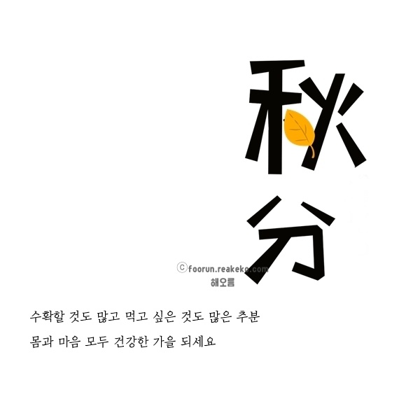 -무언가를 끝내기엔 아직 따뜻하고, 새로 시작하기엔 서늘한 날입니다. 추분이에요.