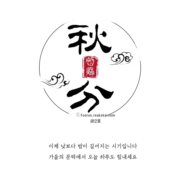 가을의 숨결이 가까이 와 닿는 추분, 바쁜 하루 속에서도 잠시 창문을 열고 계절의 속삭임을 들어보세요. 당신의 오늘이 소란스럽지 않길, 따스하고 단단하게 흘러가길 응원합니다.