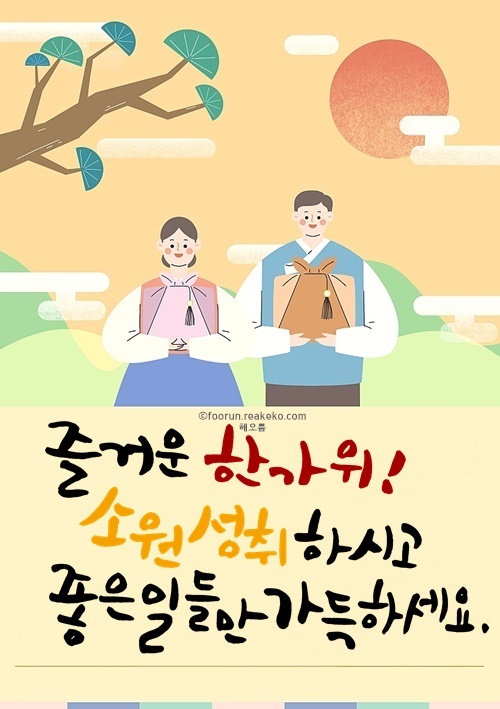 상쾌하고 선선한 가을 바람이 모두를 설레게 합니다. 민족 대명절 한가위를 맞아 행복하고 즐거운 시간 보내시고 안전한 귀성길 되기를 바랍니다. 그동의 성원과 사랑에 깊은 감사의 말씀 전합니다. 가득 차오르는 보름달처럼 행복도 건강도 모두 차오르길 바랍니다.