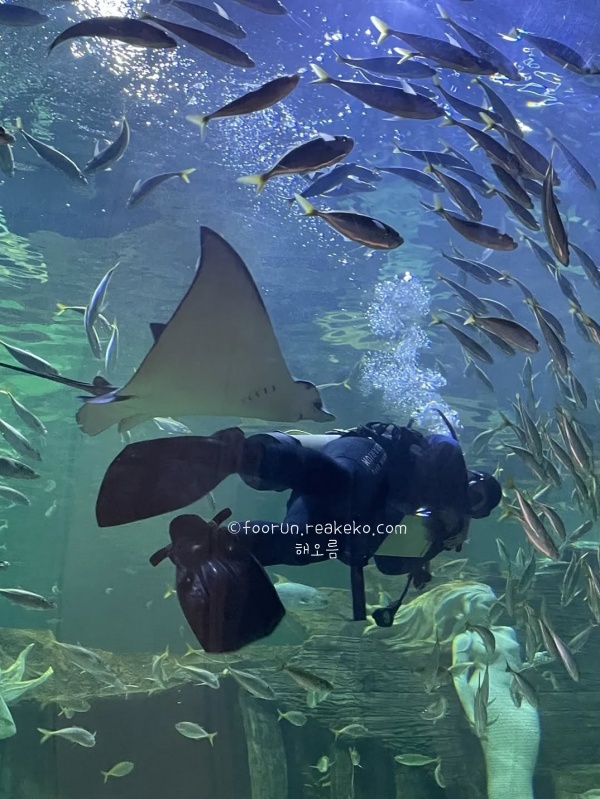 성인 입장료 29,000원이 조금 부담스러울 수 있지만, 상어 머리 위로 지나가는 투명 터널과 수중 발레 공연을 보고 나면 그 비용이 아깝지 않다는 생각이 듭니다. 최근 인스타그램 핫플로 떠오른 포토존들은 줄을 서서 찍어야 할 만큼 인기가 많으니 여유로운 평일에 방문하시는 걸 추천해 드려요. 수조 안의 물 상태가 유독 맑고 깨끗해 보여서 관리의 정성이 느껴졌으며, 백화점 내부 시설답게 화장실과 편의 시설의 퀄리티는 대전 내 최고 수준이라고 자부할 수 있습니다.